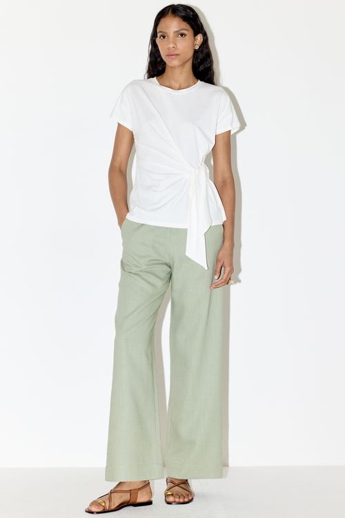 CALÇA TAFETA AMASSADO - CREME