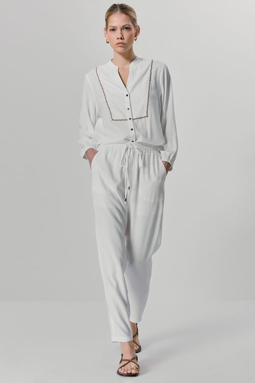 CALÇA JORDANIA PREGA COM ELASTICO - OFF WHITE