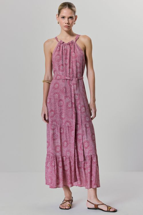 VESTIDO ESTAMPA CASHEMIRE BABADO - BANANA