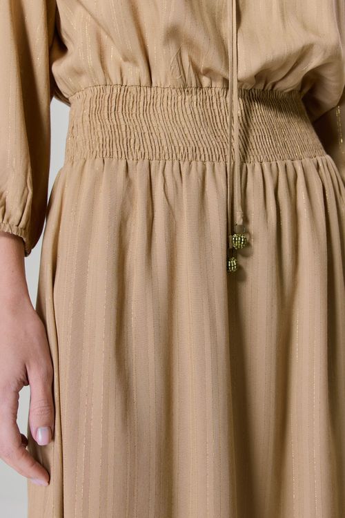 VESTIDO METALIC STRIPE LASTEX - CAQUI
