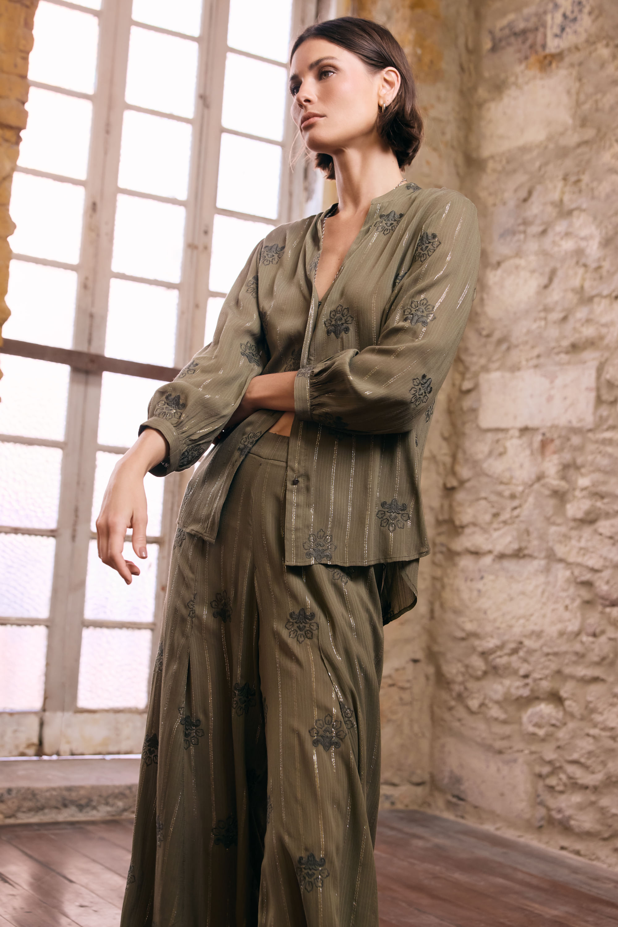 Blusa Bordada Chancellor Com Lurex - VERDE MILITAR