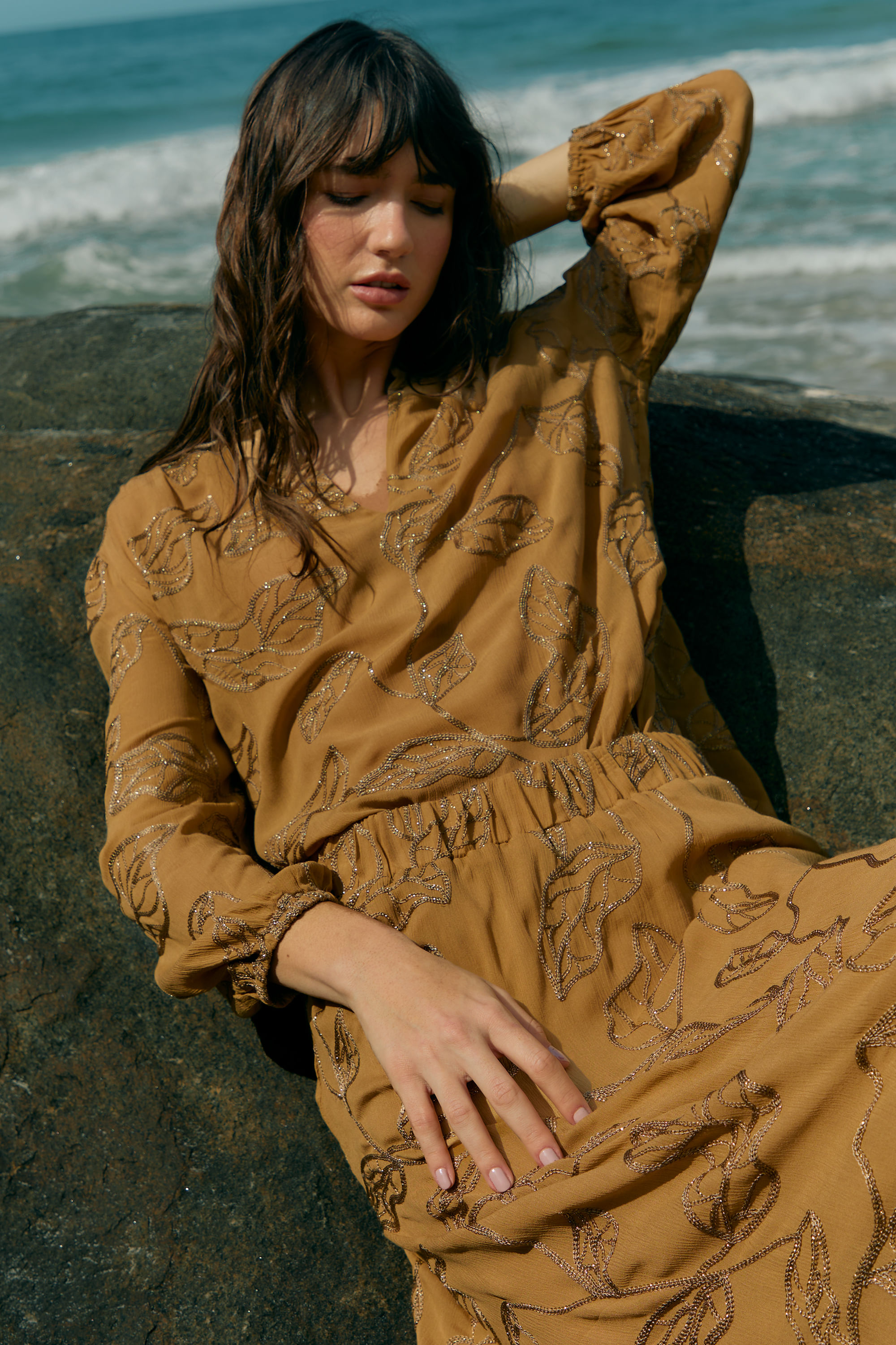 Blusa Bordado Gold Yuri - CAQUI