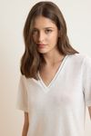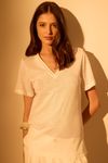 Blusa de Malha Linho V com Guipuier - OFF WHITE