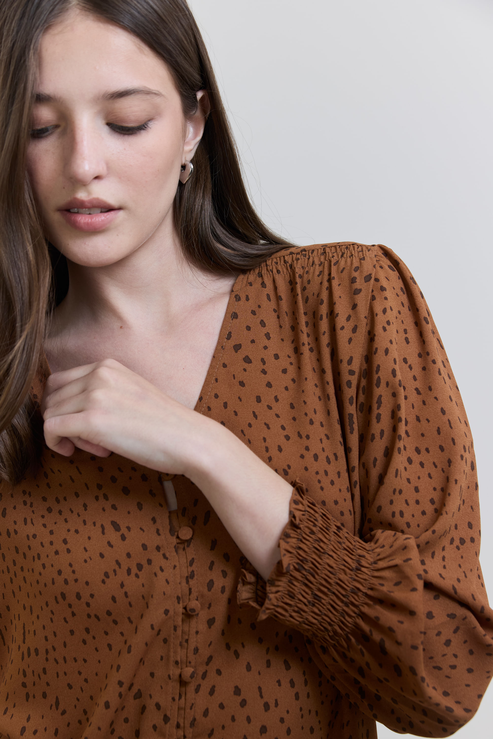 Blusa Estampa Oncinha Manga Lastex - OCRE
