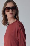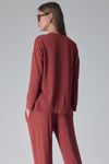 BLUSA MALHA CANELADA PRESSÃO OMBRO - CEREJA