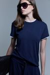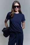 Blusa Malha Detalhes Gola E Manga - AZUL MARINHO