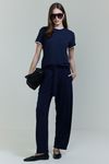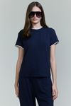 Blusa Malha Detalhes Gola E Manga - AZUL MARINHO