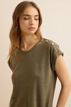 Blusa Malha Linho Com Botões - VERDE MILITAR