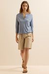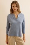 Blusa Malha Linho Com Pate - AZUL