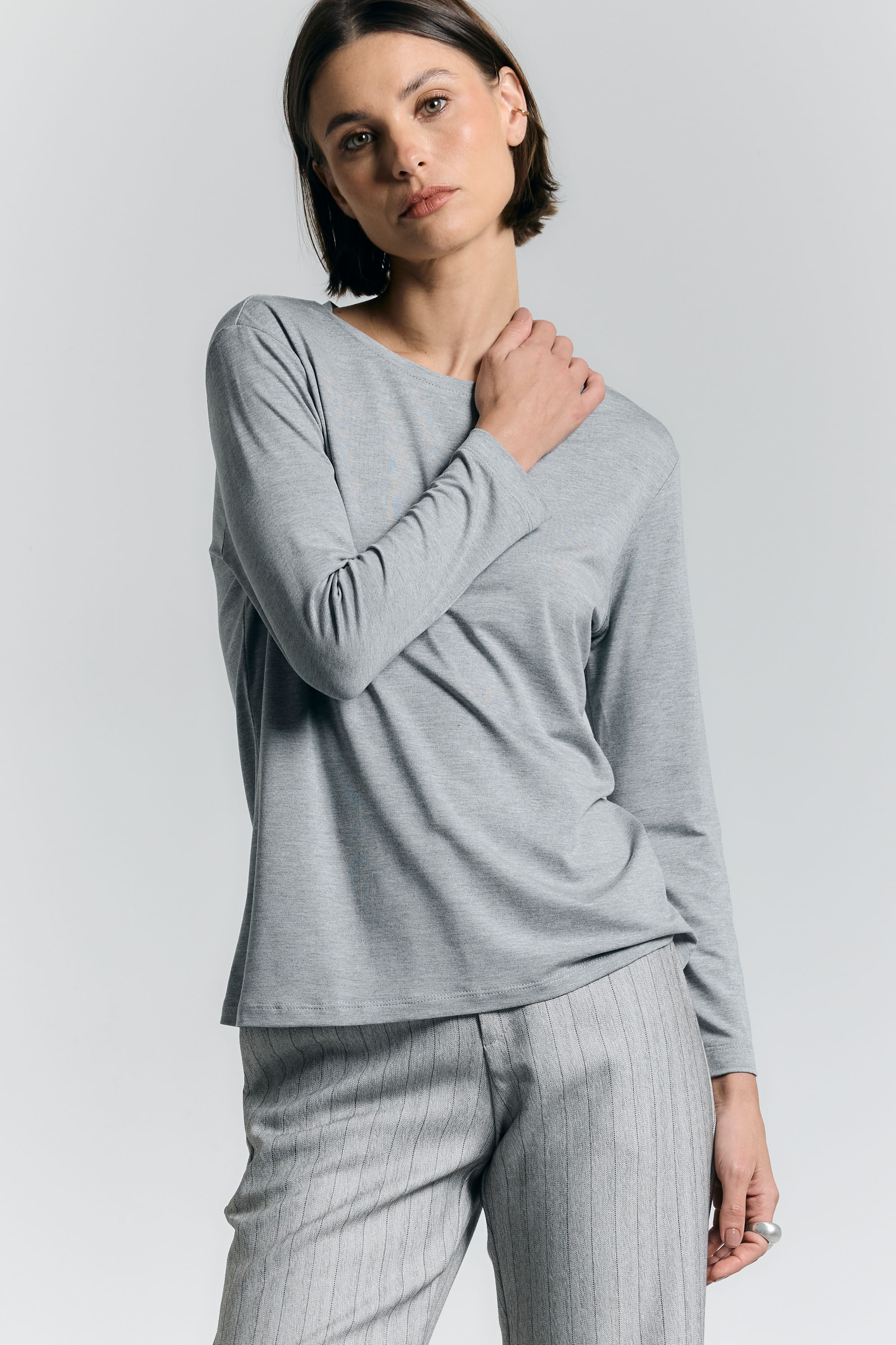 Blusa Malha Vis Up Manga Longa - MESCLA CLARO