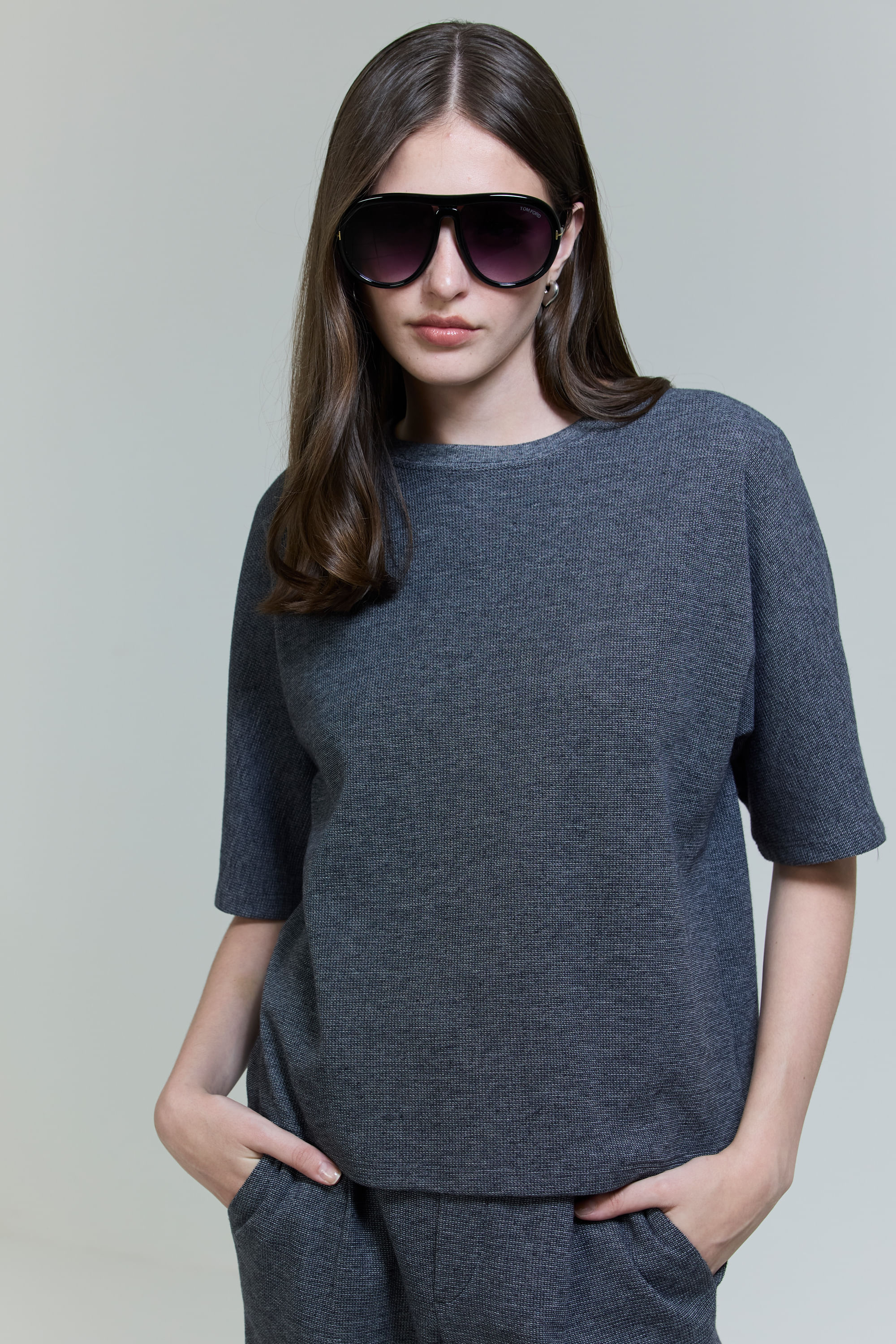 Blusa Malha Waffle Manga Morcego - CINZA