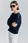 Blusa Pull Tricot Botões Ombro - AZUL MARINHO