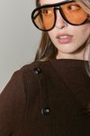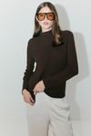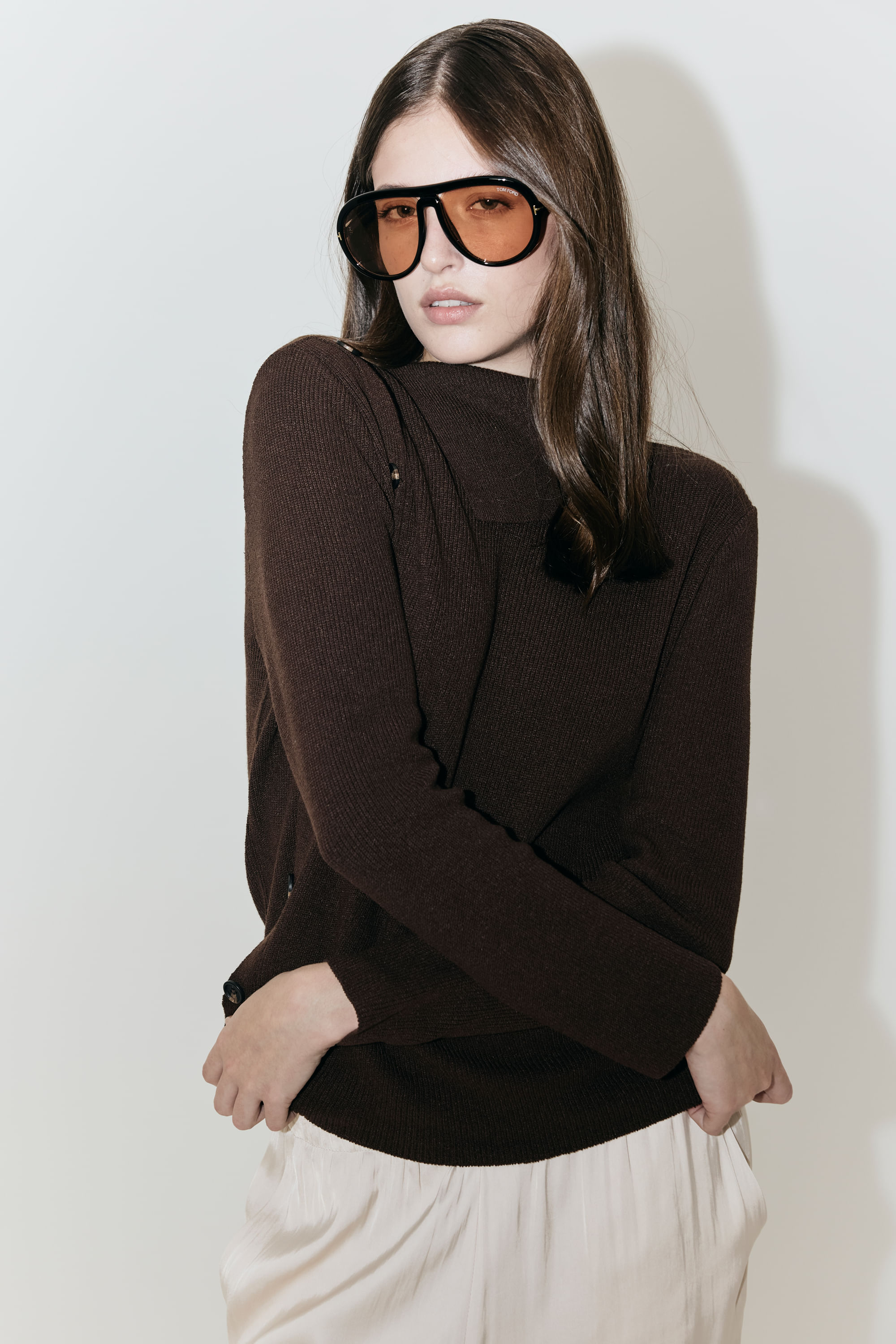 Blusa Tricot Gola Triangulo Botões - MARROM