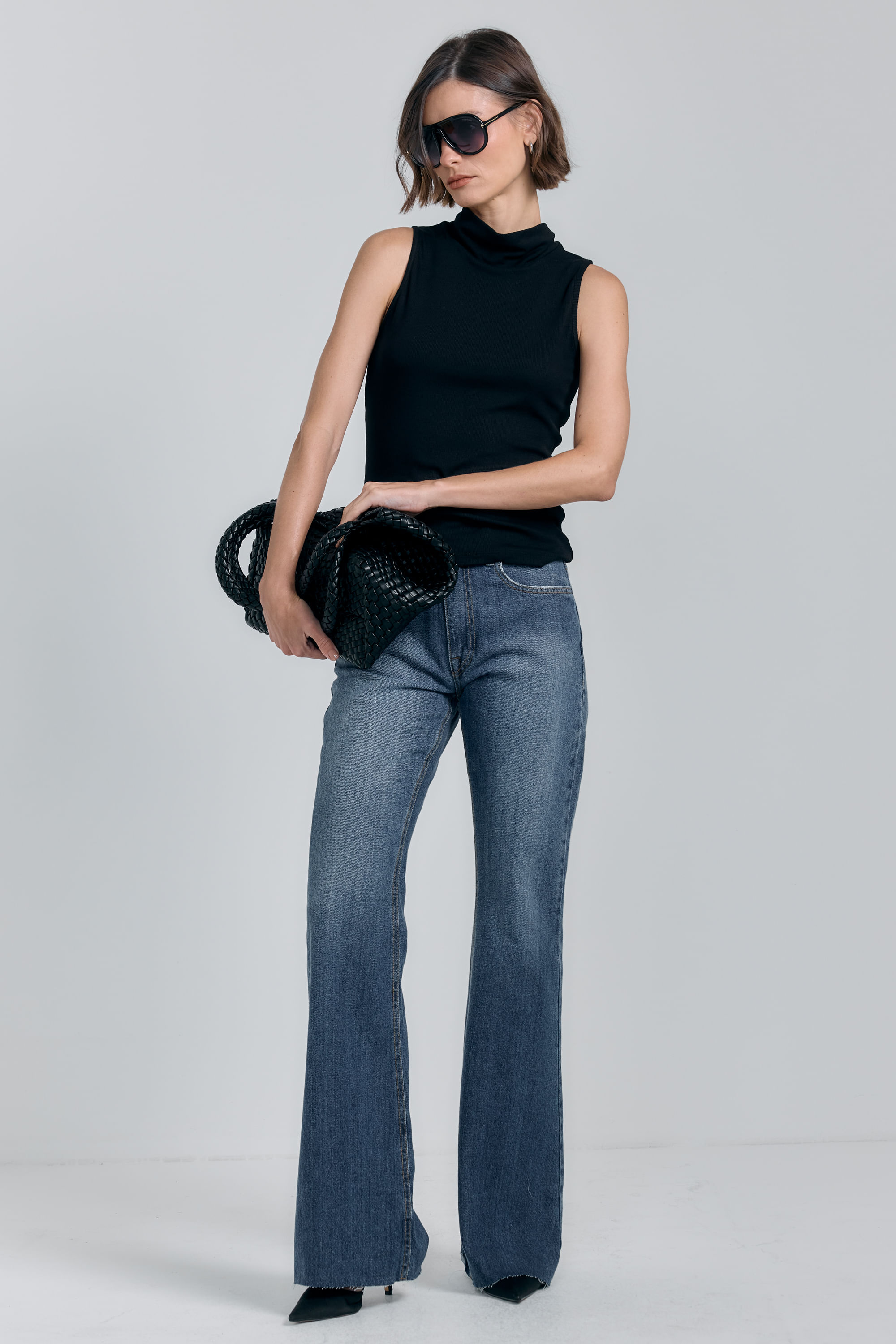 Calça Boot Cut Barra A Fio - JEANS MEDIO