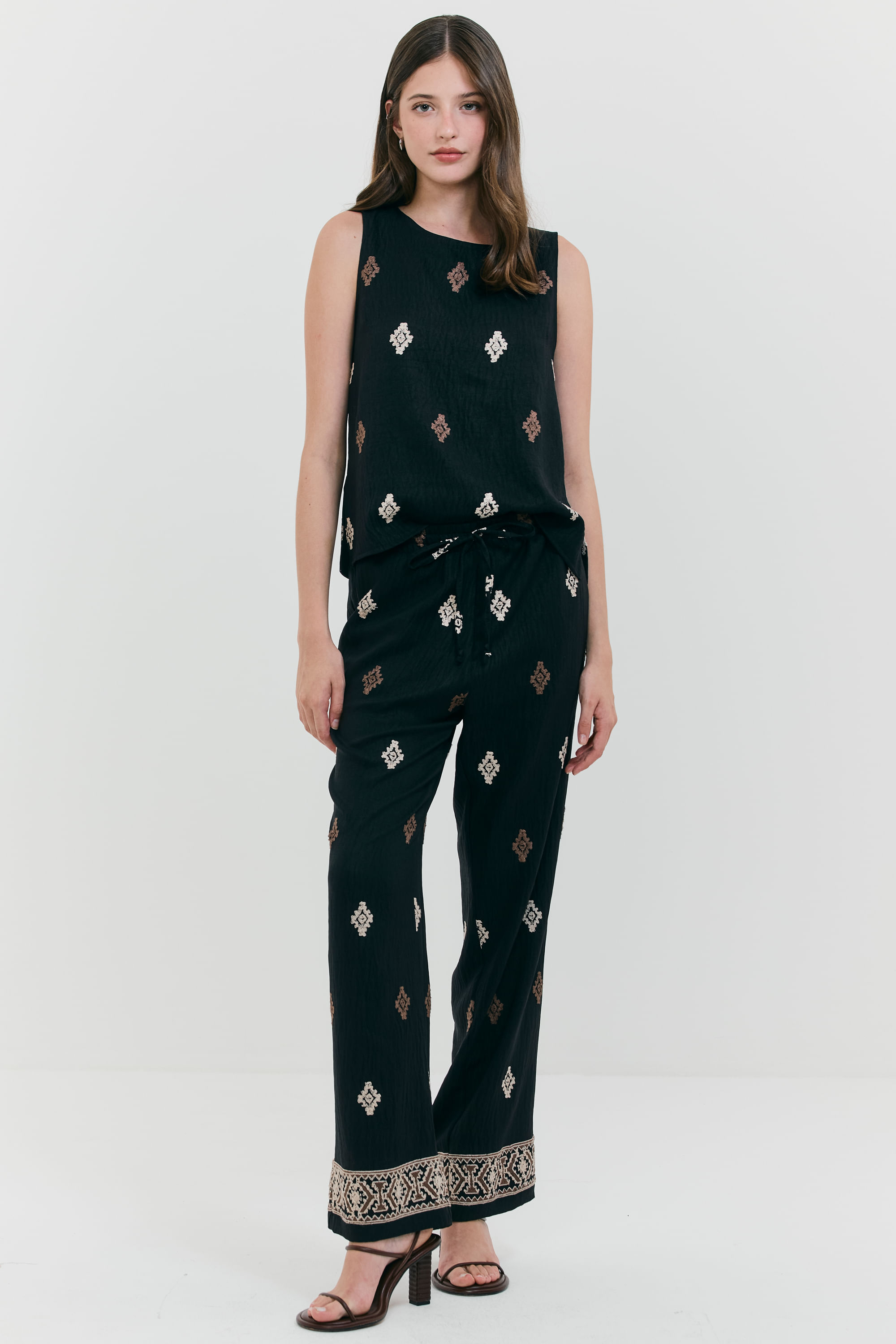 Calça Bordada Antik - PRETO