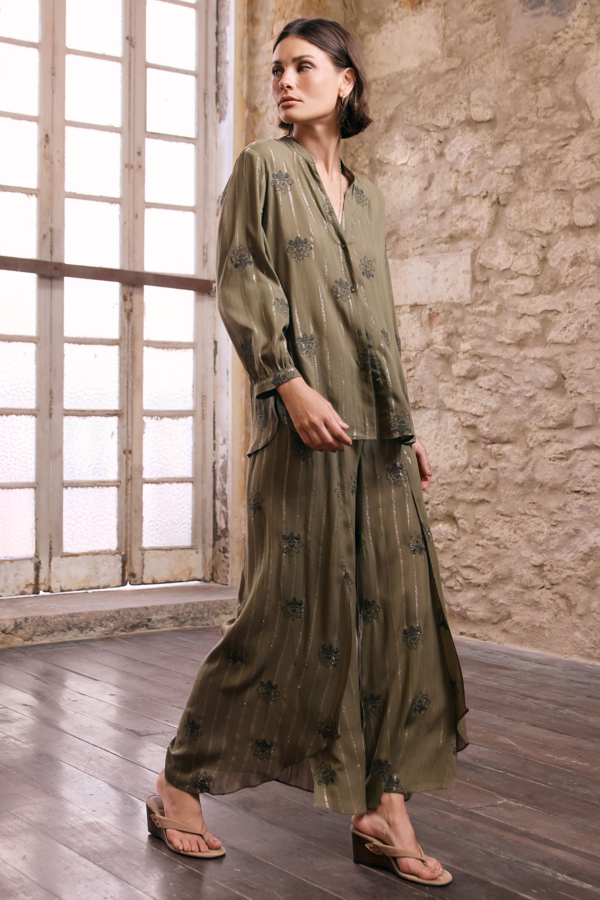 Calça Bordada Chancellor Com Lurex - VERDE MILITAR