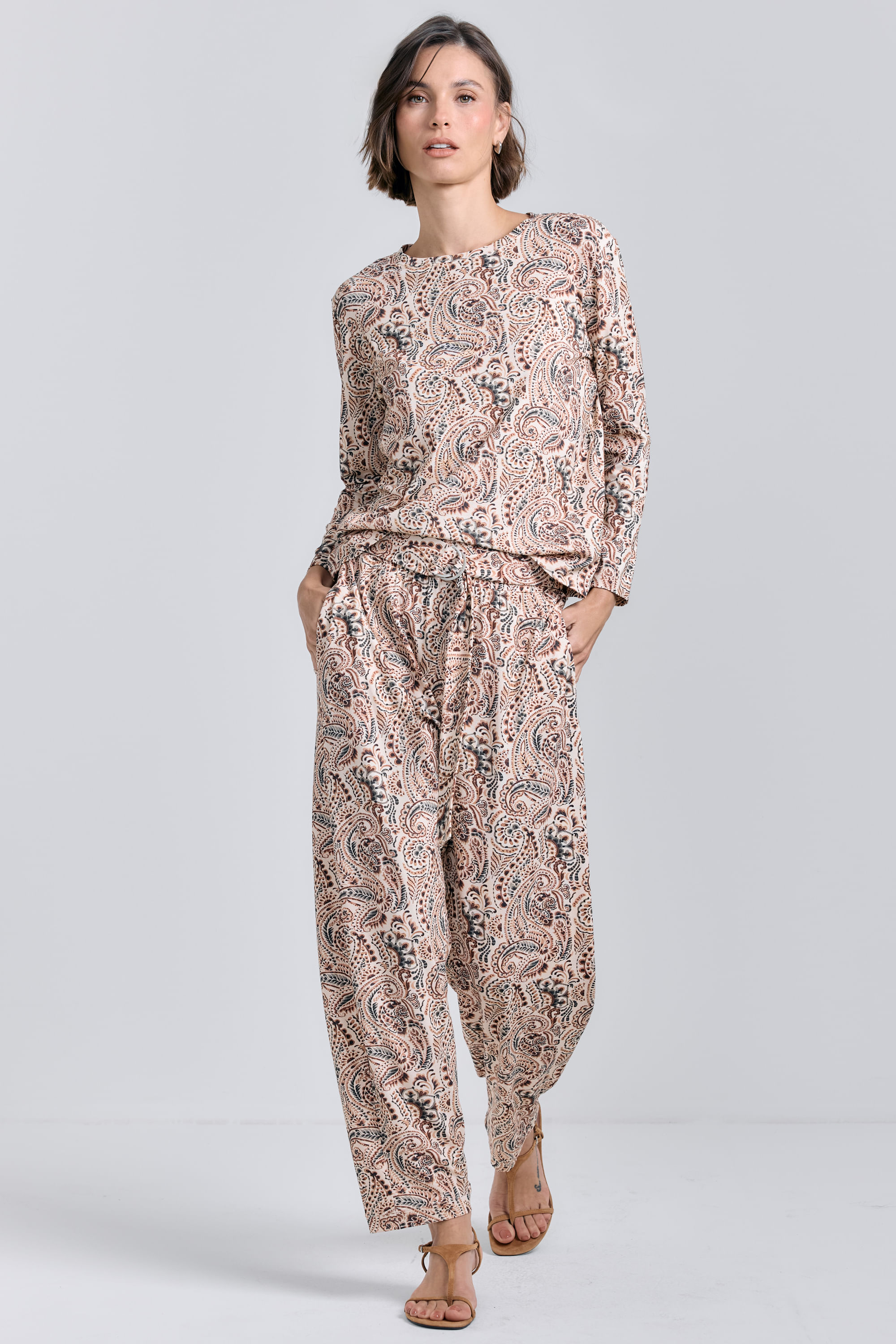 Calça Malha Estampa Floral Pasley - CREME