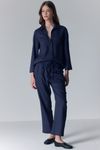 CAMISA COM LINHO BOTÕES LATERIAS - AZUL MARINHO