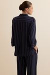 Camisa Com Linho Listrado 7/8 - AZUL MARINHO