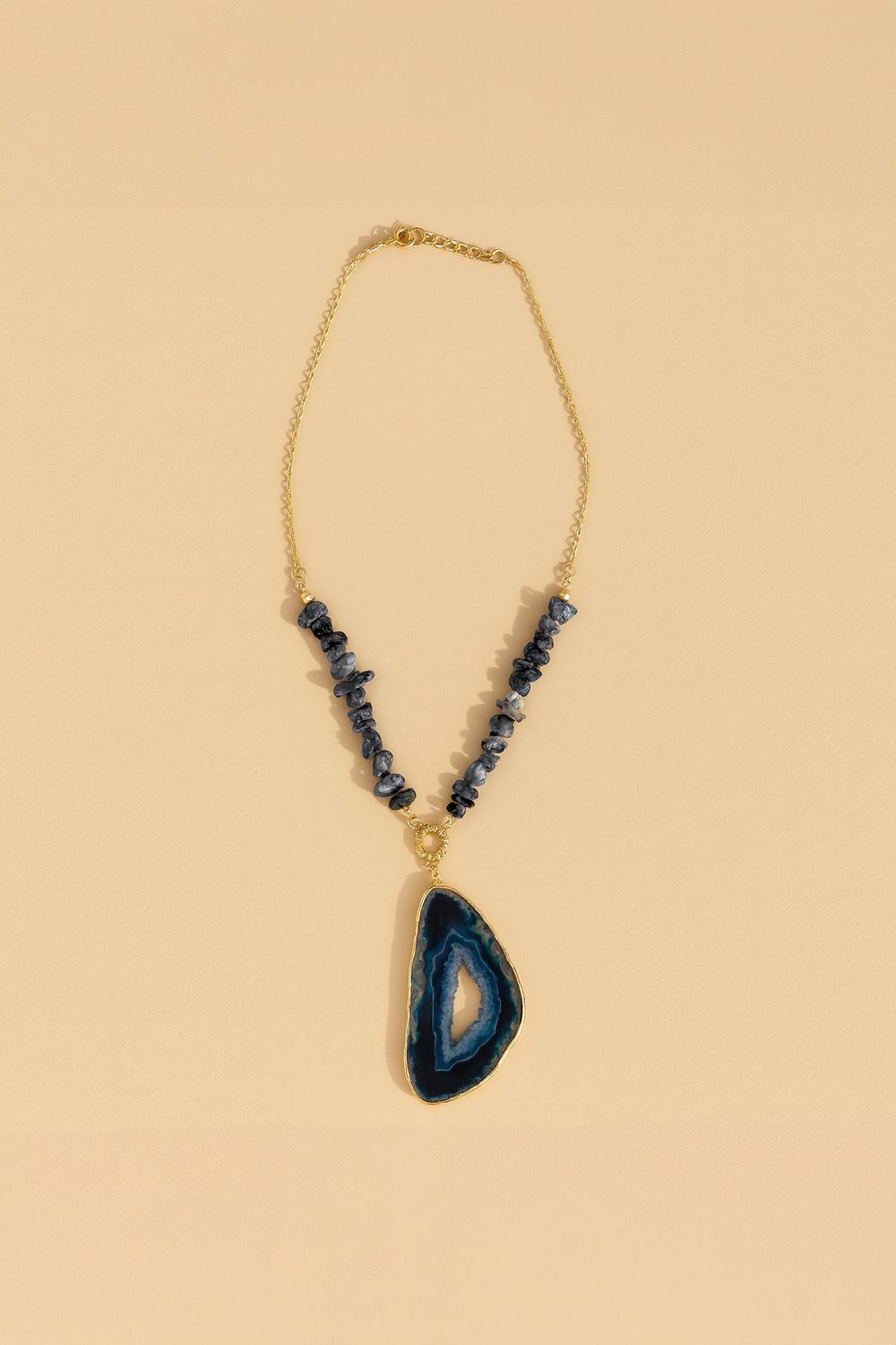 Colar Folheado Cascalho e Pedra Natural - AZUL - U - AZUL