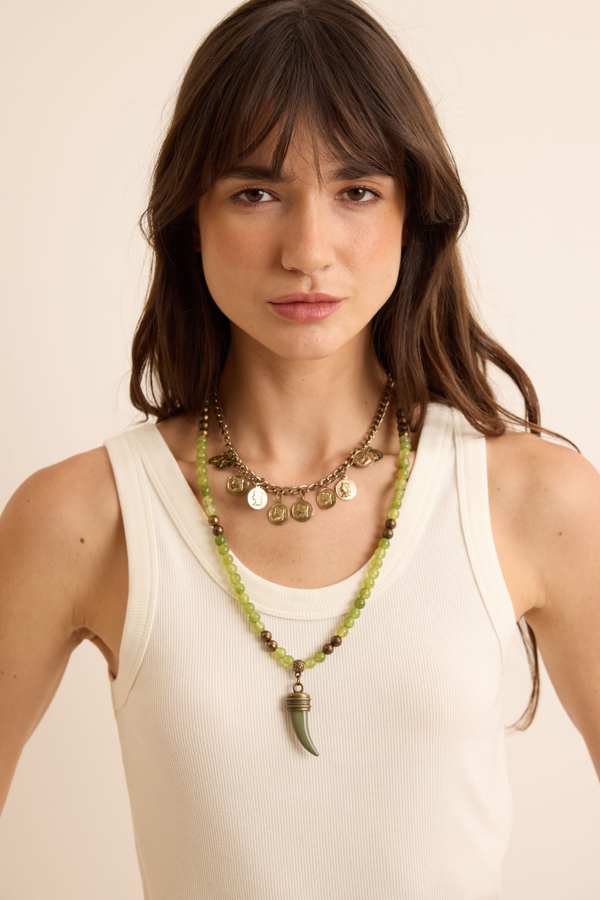 Colar Resina Dente e Medalhas - VERDE - U - VERDE
