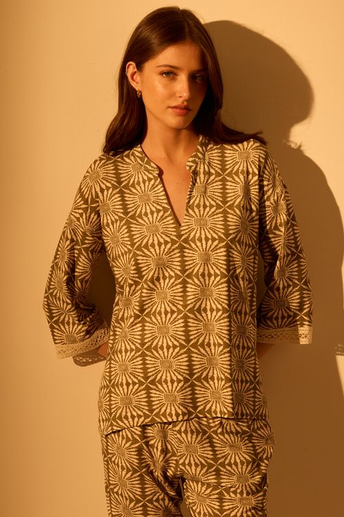 Camisa Estampa Lenço Manga Curta - CAIENE