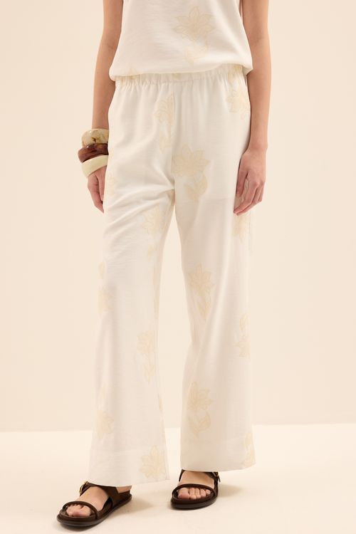 Calça Bordado Folhas Mayfair - OFF WHITE