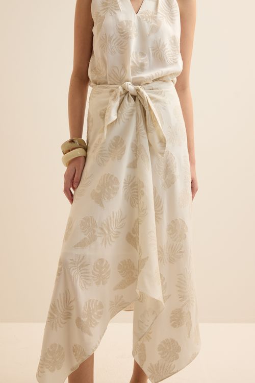 Vestido com Linho Nó Jackard Folha - OFF WHITE