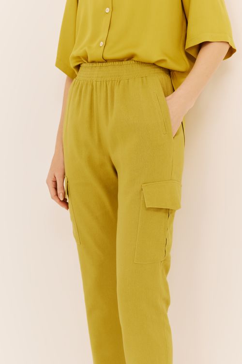CALÇA COM LINHO SAFARI - VERDE