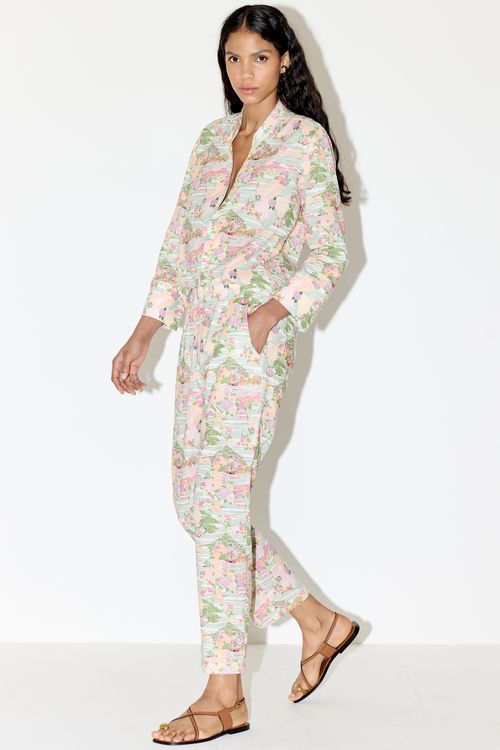 CALÇA COM LINHO ESTAMPA RIVIERA - OFF WHITE