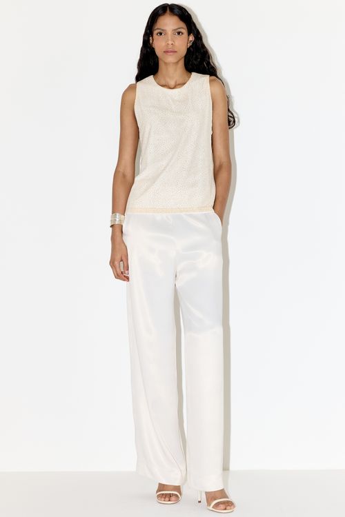 CALÇA CETIM DE VISCOSE RETA - OFF WHITE