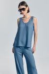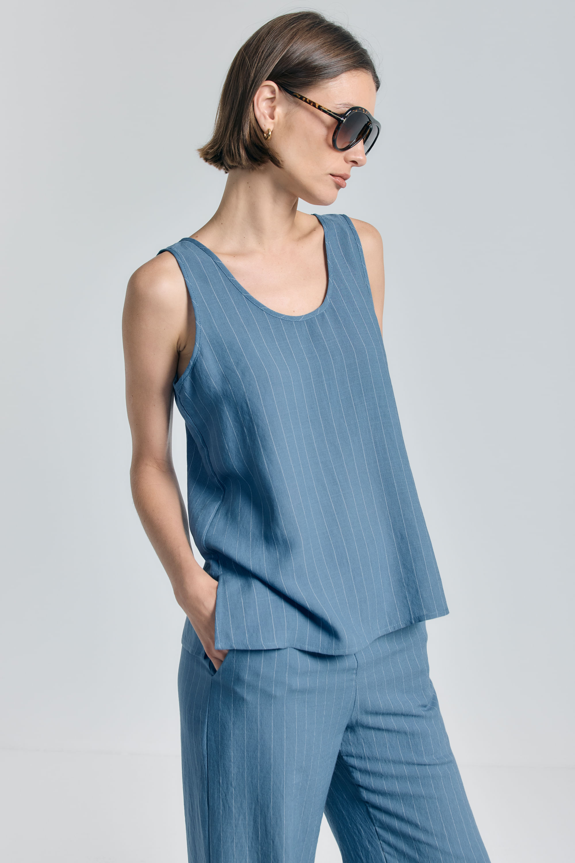 Regata Com Linho Risca De Giz - AZUL