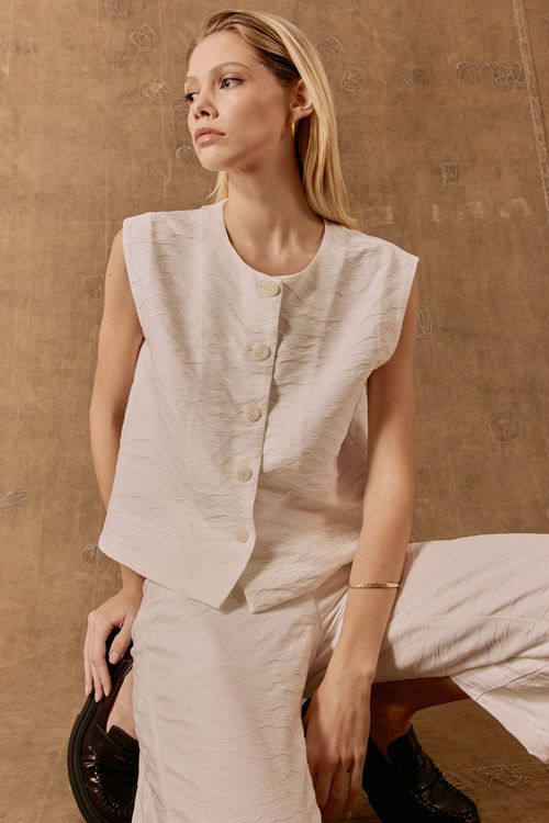 Jaqueta Com Linho Bolsos - AZUL MARINHO
