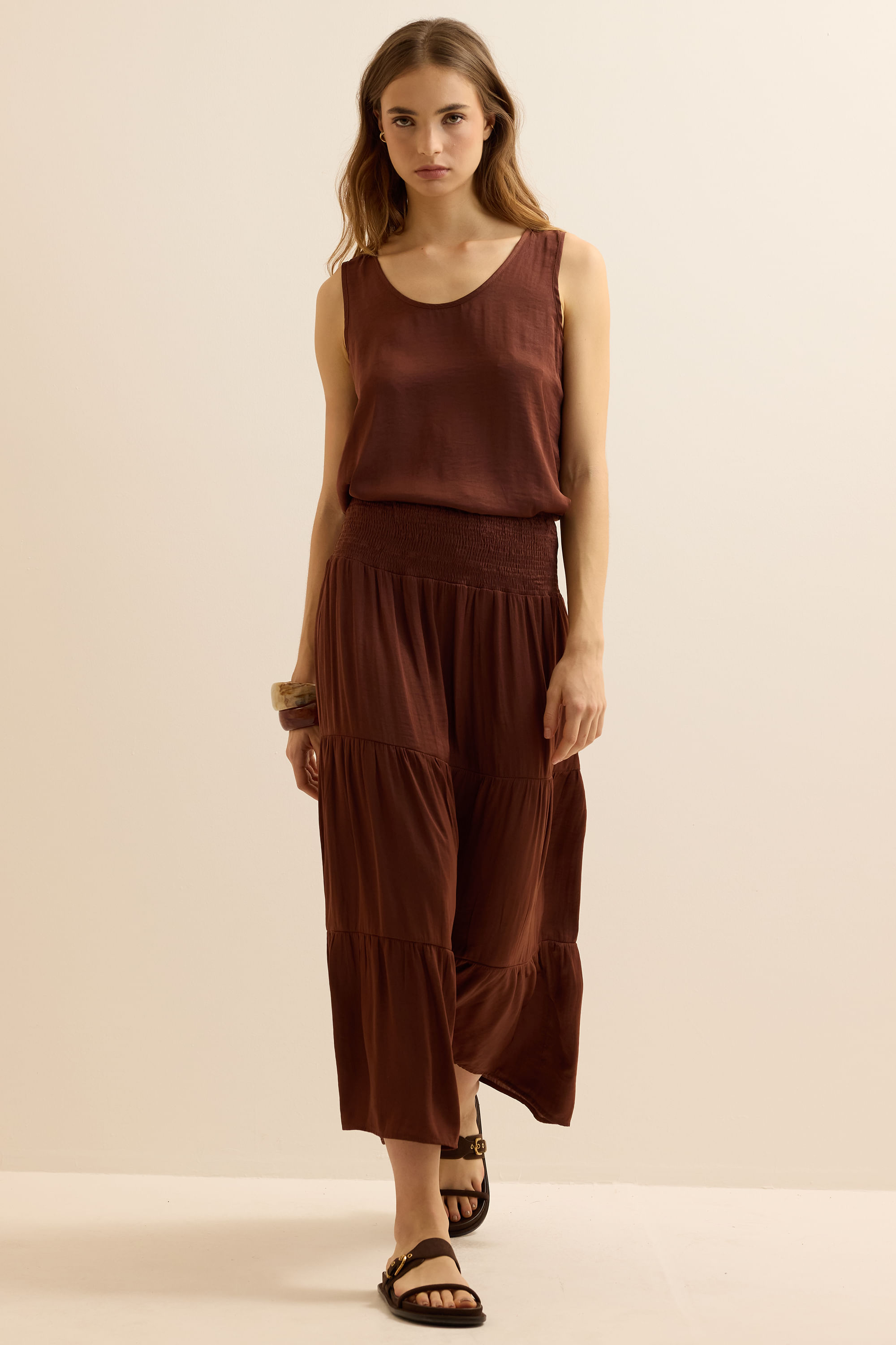 Saia Lastex Satin Visage - MARROM