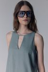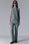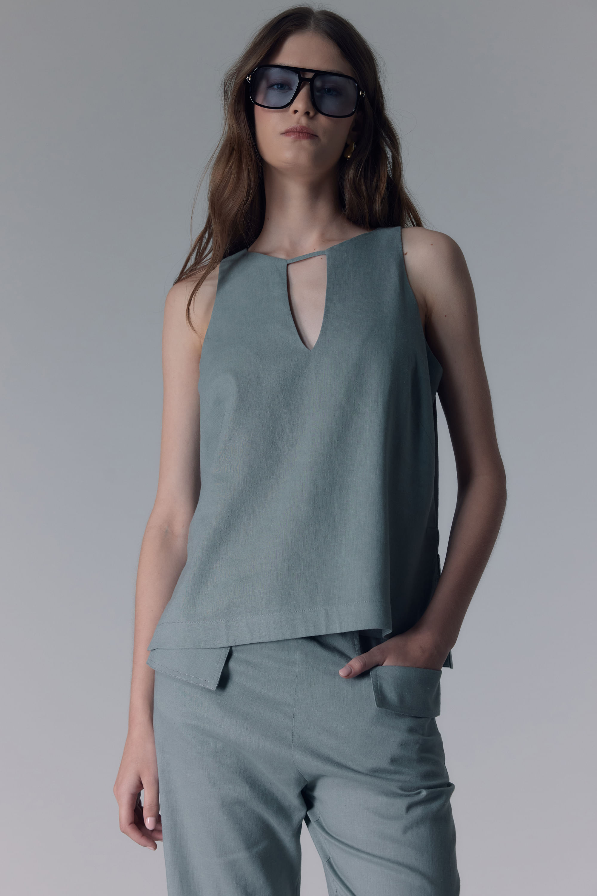 TOP COM LINHO DECOTE TRIANGULO - CINZA