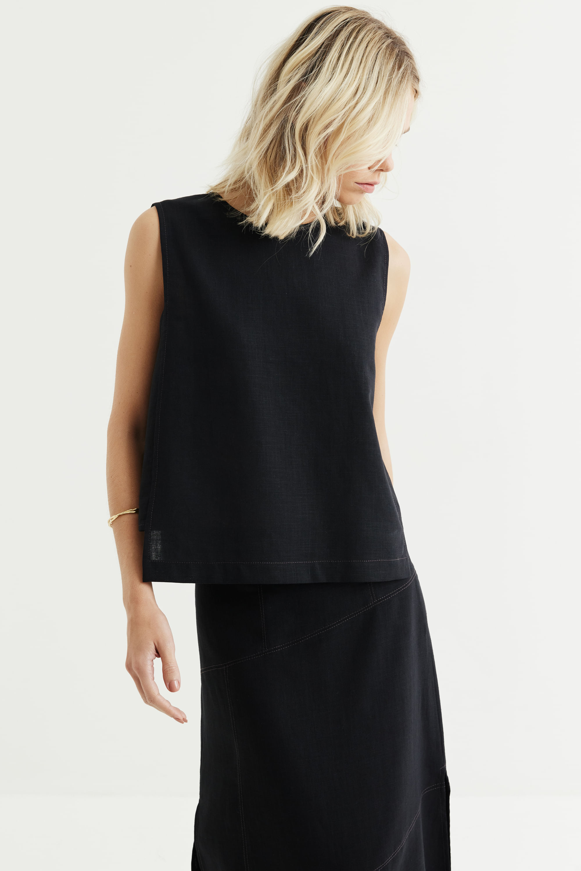 TOP COM LINHO RECORTES BUENA VISTA - PRETO