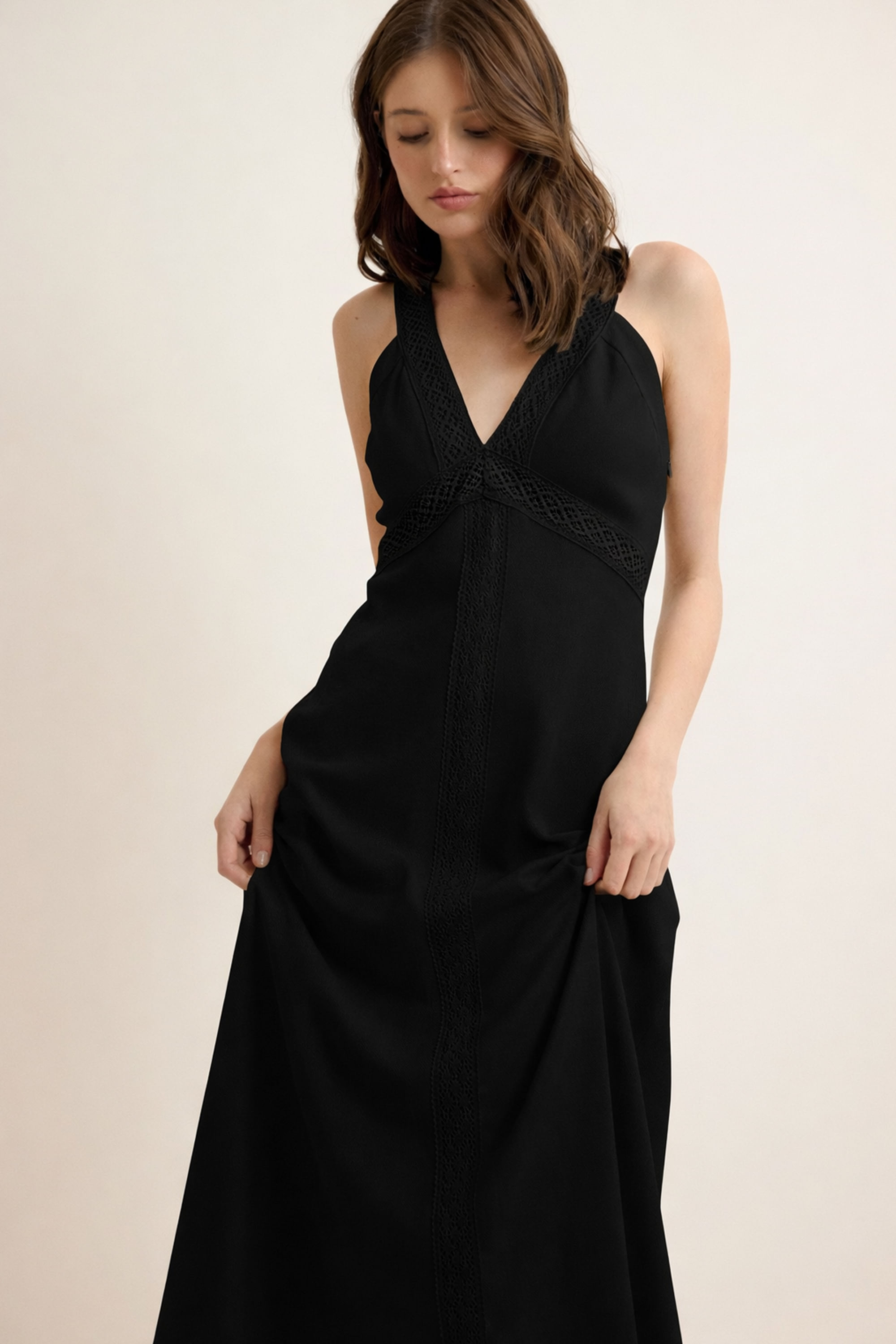 Vestido Com Linho E Renda Buena Vista - PRETO