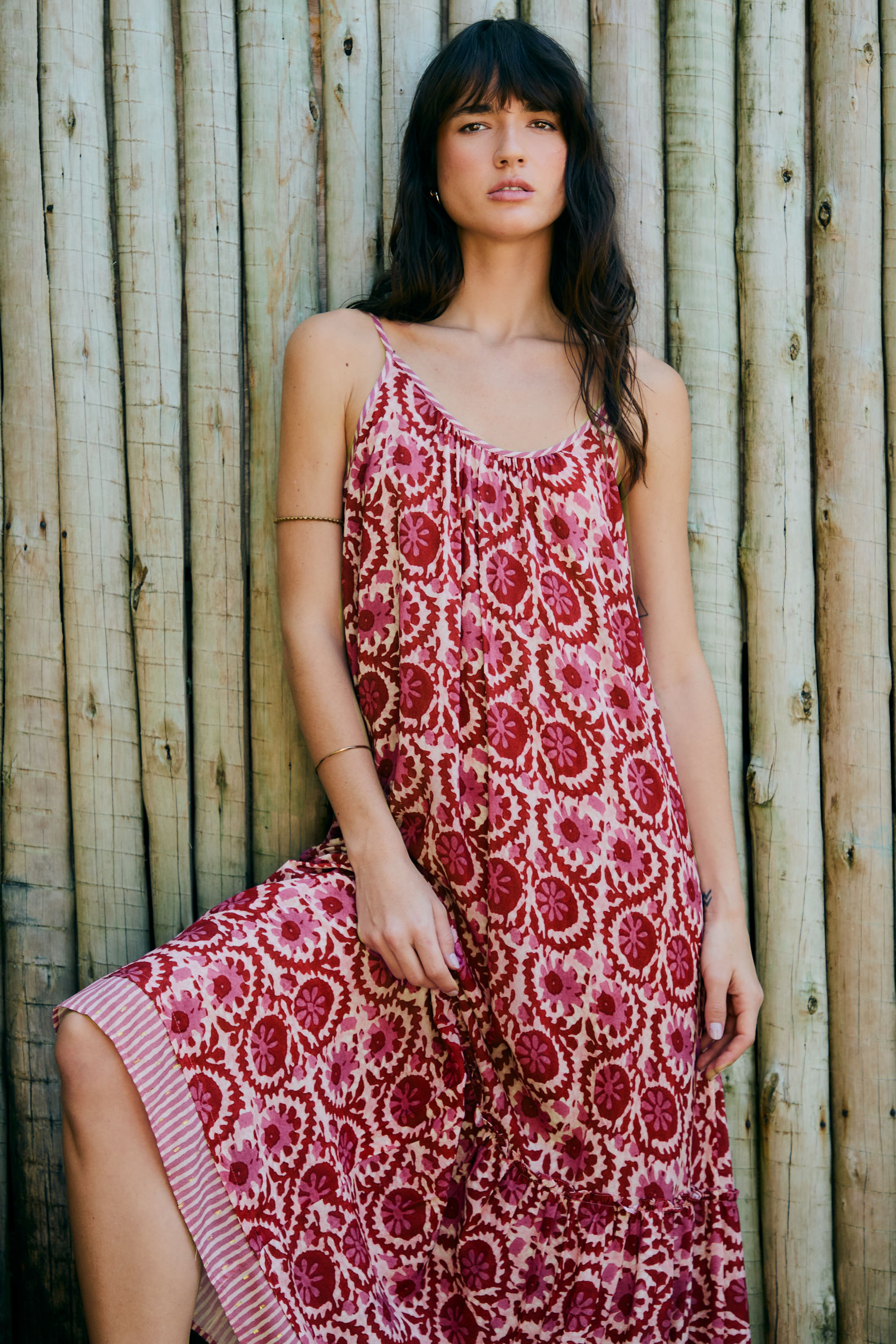 Vestido Estampa Batik Barra Listra Gold Com Faixa - CEREJA