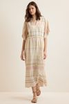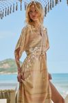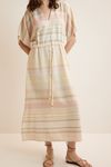 Vestido Kaftan Com Linho Listrado - BEGE