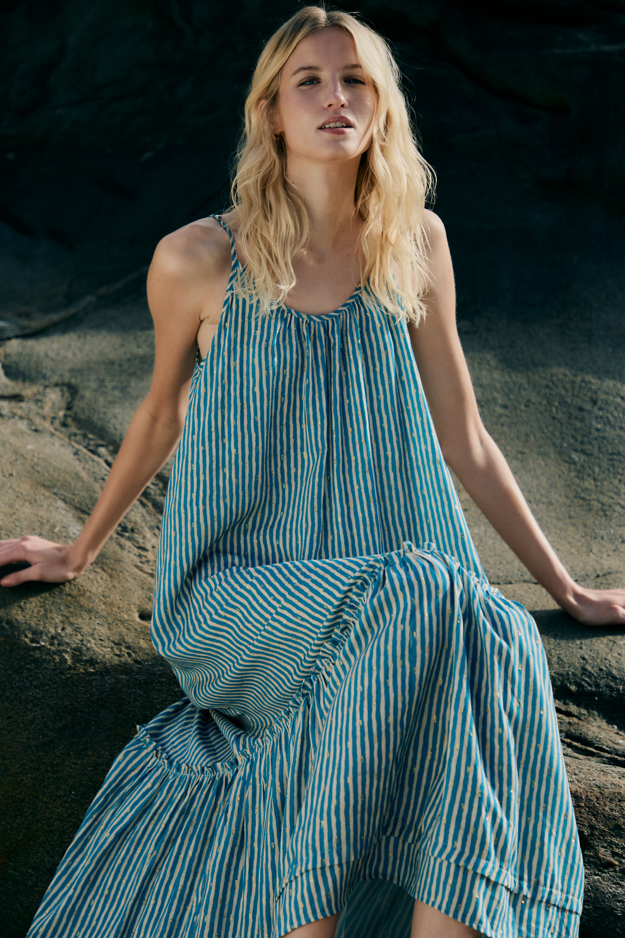 Vestido Listra Tie Dye Gold Com Faixa - AZUL