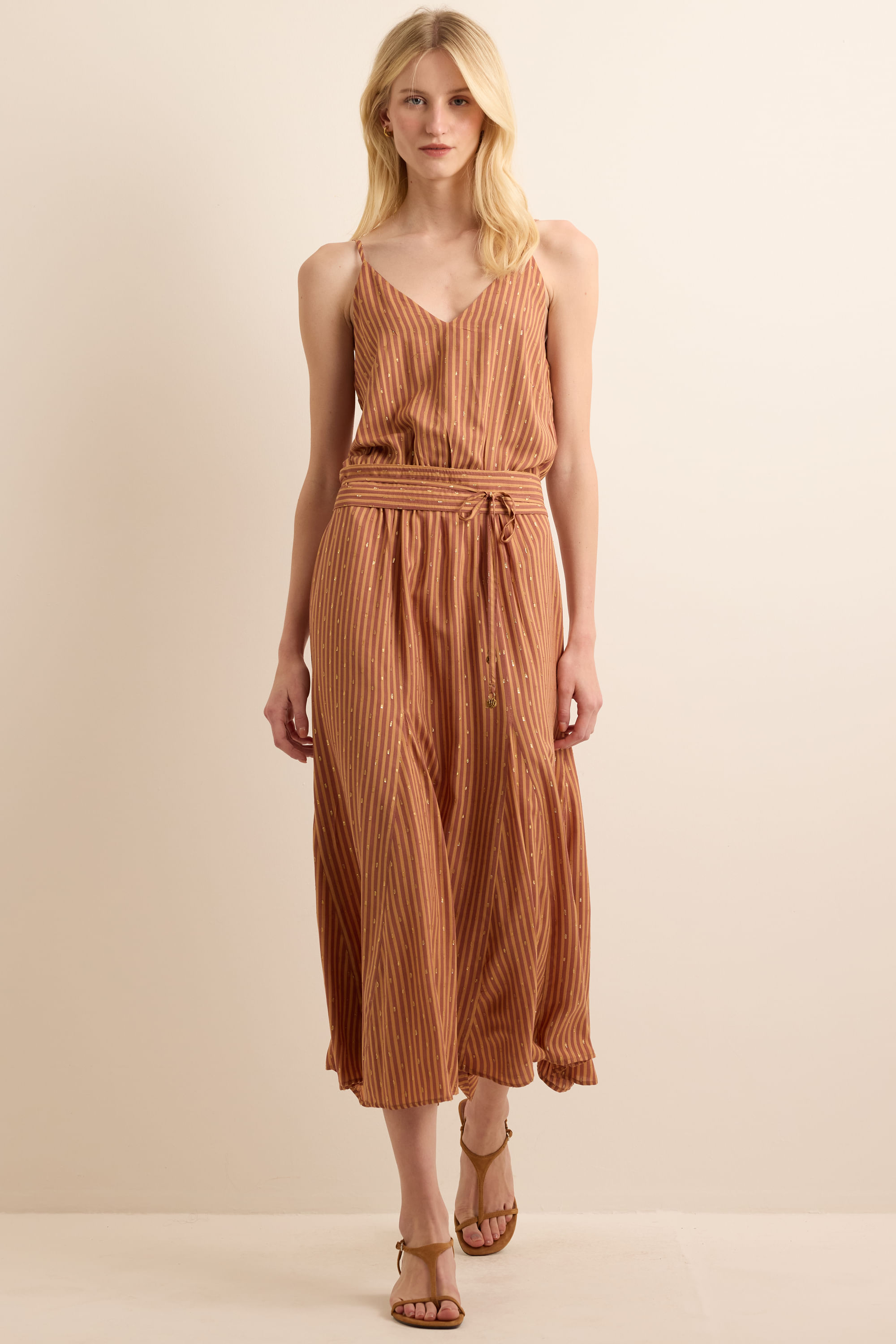 Vestido Listrado Bicolor Gold Com Faixa - MARROM